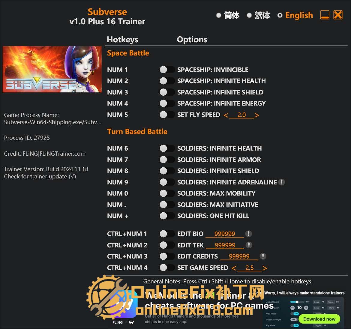 《颠覆/Subverse》 修改器