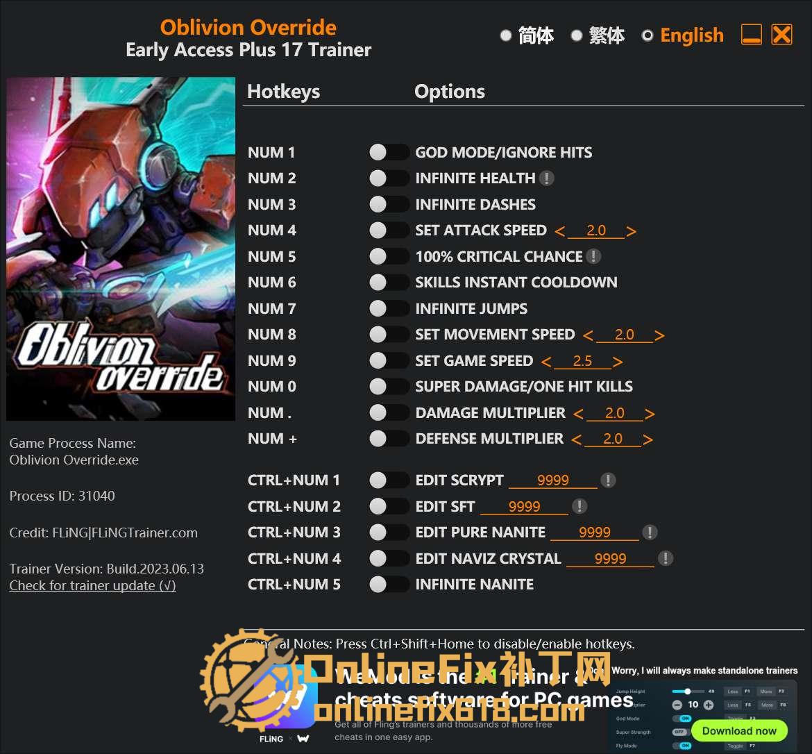 《湮灭线/Oblivion Override》 修改器