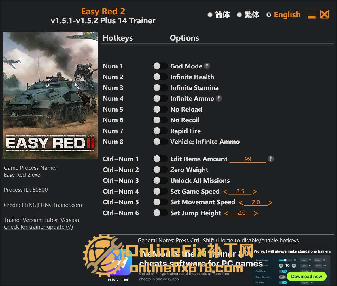 《浅红2/轻松挂彩2/Easy Red 2》 修改器