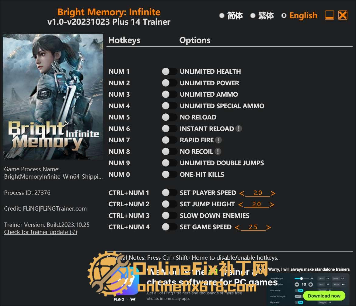 关键词:#Bright Memory: Infinite Trainer #修改器 #风灵月影