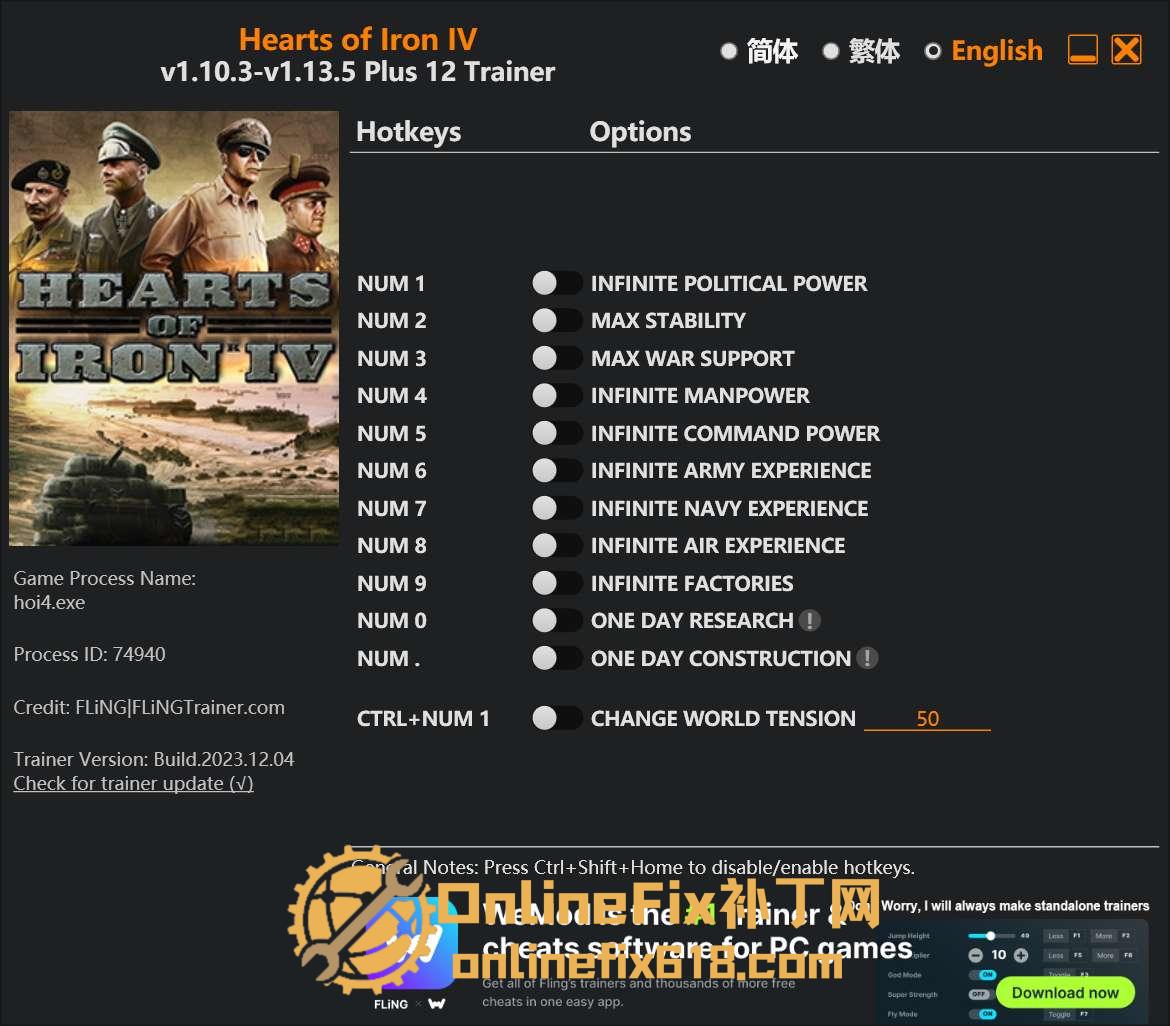 关键词:#Hearts of Iron IV Trainer #修改器 #风灵月影