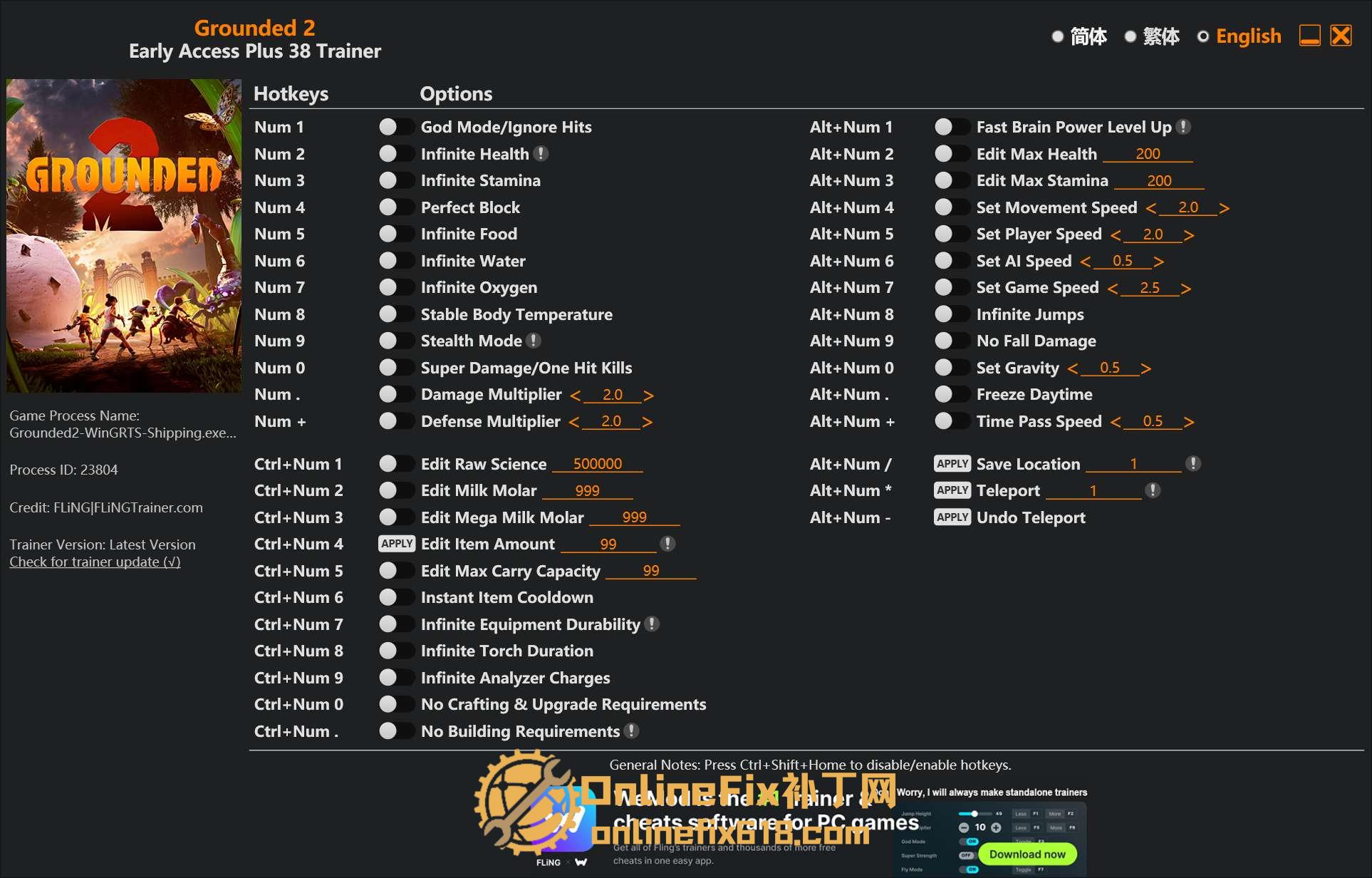 🎮 修改器说明:本站提供的 Grounded 2 Trainer 修改器,包含 45 项实用功能,助你轻松畅玩游戏。