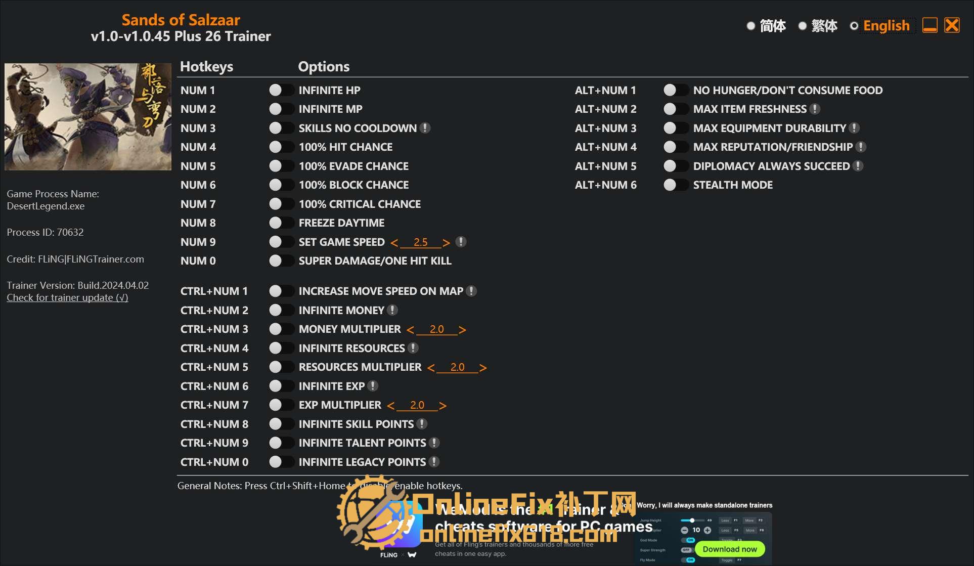 🎮 修改器说明:本站提供的 Sands of Salzaar Trainer 修改器,包含 33 项实用功能,助你轻松畅玩游戏。