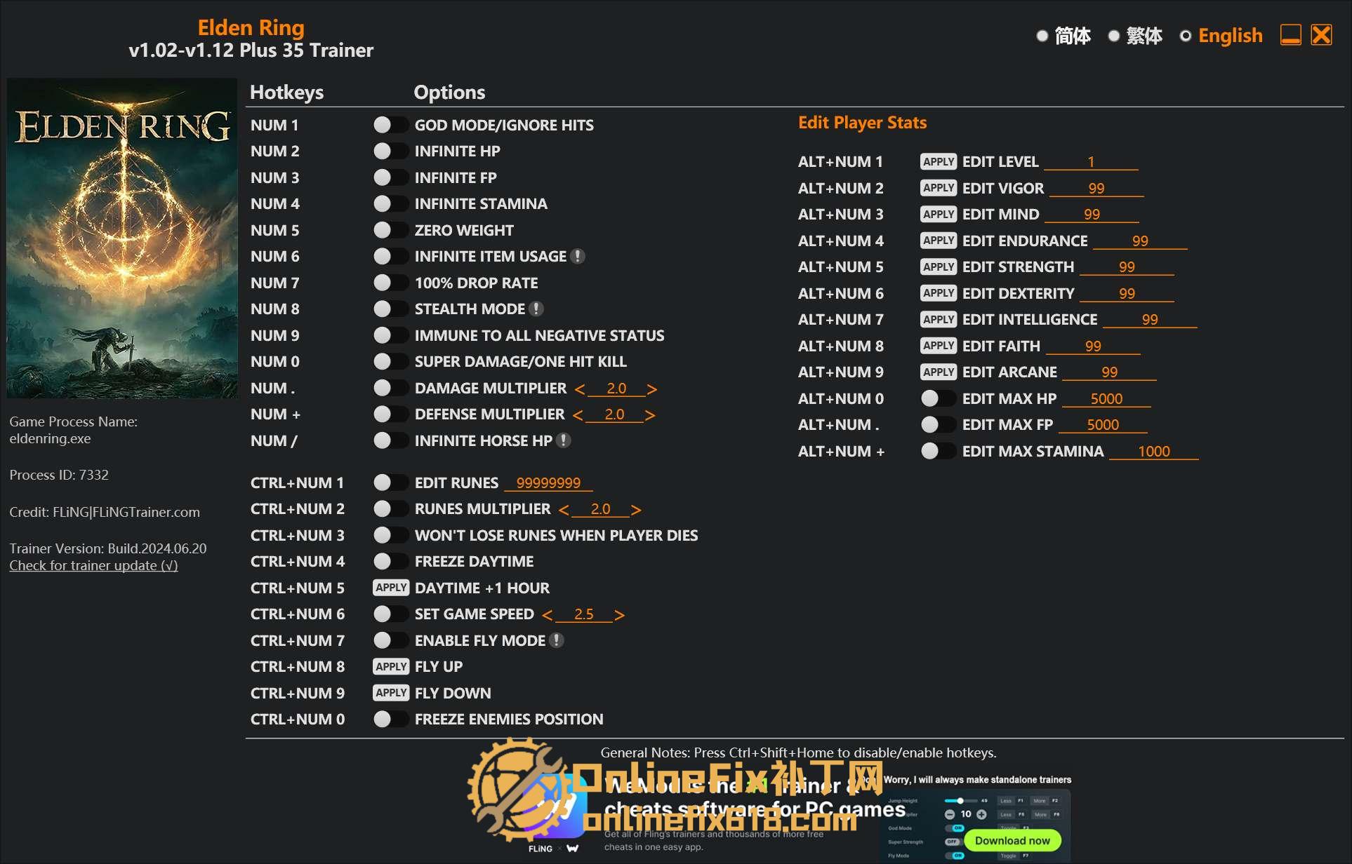 说实话,Elden Ring Shadow of the Erdtree Trainer 这款游戏的某些设定确实比较肝,有了这款修改器可以大大提升游戏体验。