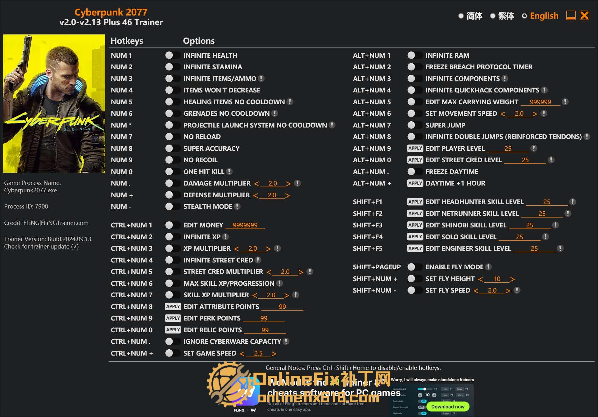 《赛博朋克2077/Cyberpunk 2077》 46项修改器